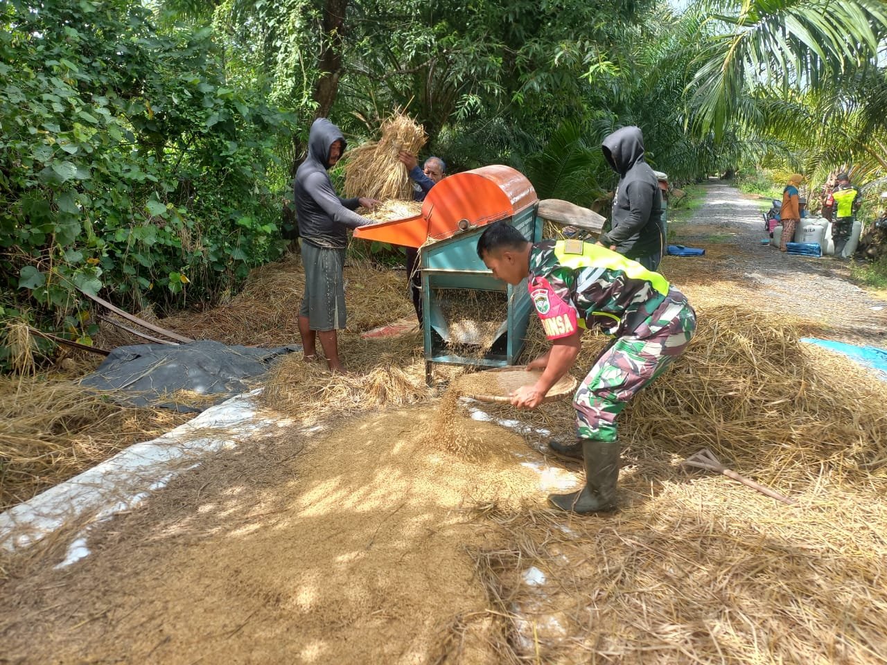 Kegiatan ini dilakukan sebagai bentuk kepedulian dan dukungan Babinsa terhadap para petani di wilayah binaannya. Dengan penuh semangat, Sertu Agus bersama warga bekerja sama di area perontokan padi, menunjukkan kebersamaan dan gotong royong yang menjadi ciri khas masyarakat pedesaan.