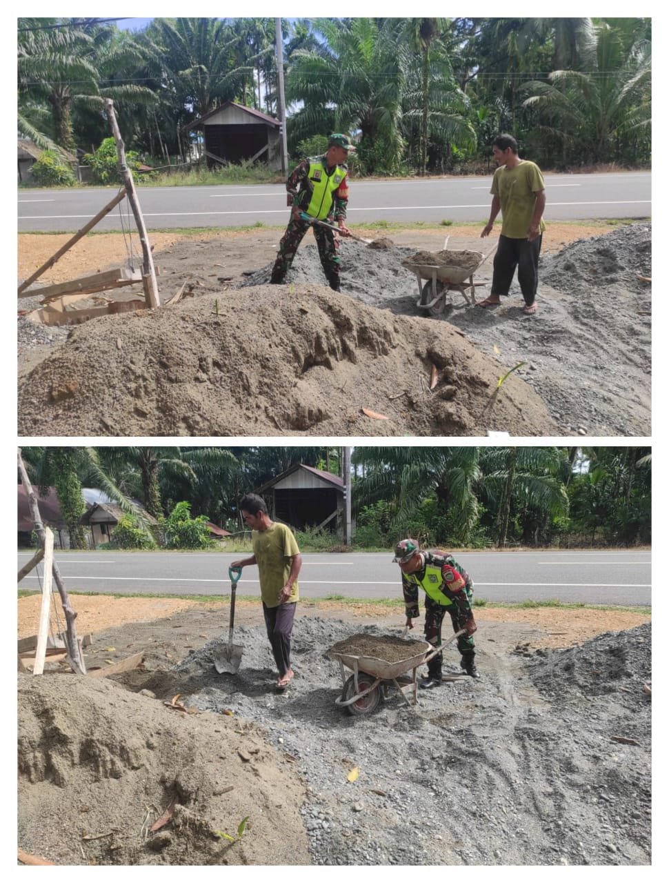 Kegiatan tersebut merupakan bagian dari tugas pembinaan teritorial Babinsa dalam menjalin kedekatan dan kemanunggalan TNI dengan rakyat. Dengan penuh semangat kebersamaan, Serka Heri J bersama warga bergotong royong memindahkan material pasir yang akan digunakan untuk pembangunan pondasi rumah.