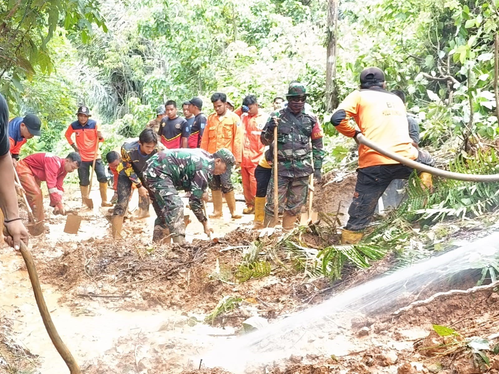 HULU SUNGAI SELATAN – Akses jalan hampir tertutup material longsor, Jajaran Bintara Pembina Desa (Babinsa) Koramil 1003-02/Padang Batung bergerak cepat dengan menjadi pelopor dan contoh masyarakat melaksanakan gotong royong pembersihan evakuasi tanah dan lumpur yang telah menutup Sebagian bahu jalan di Desa Malilingin Kecamatan Padang Batung Kabupaten Hulu Sungai Selatan (HSS). Rabu (12/11/25) sore