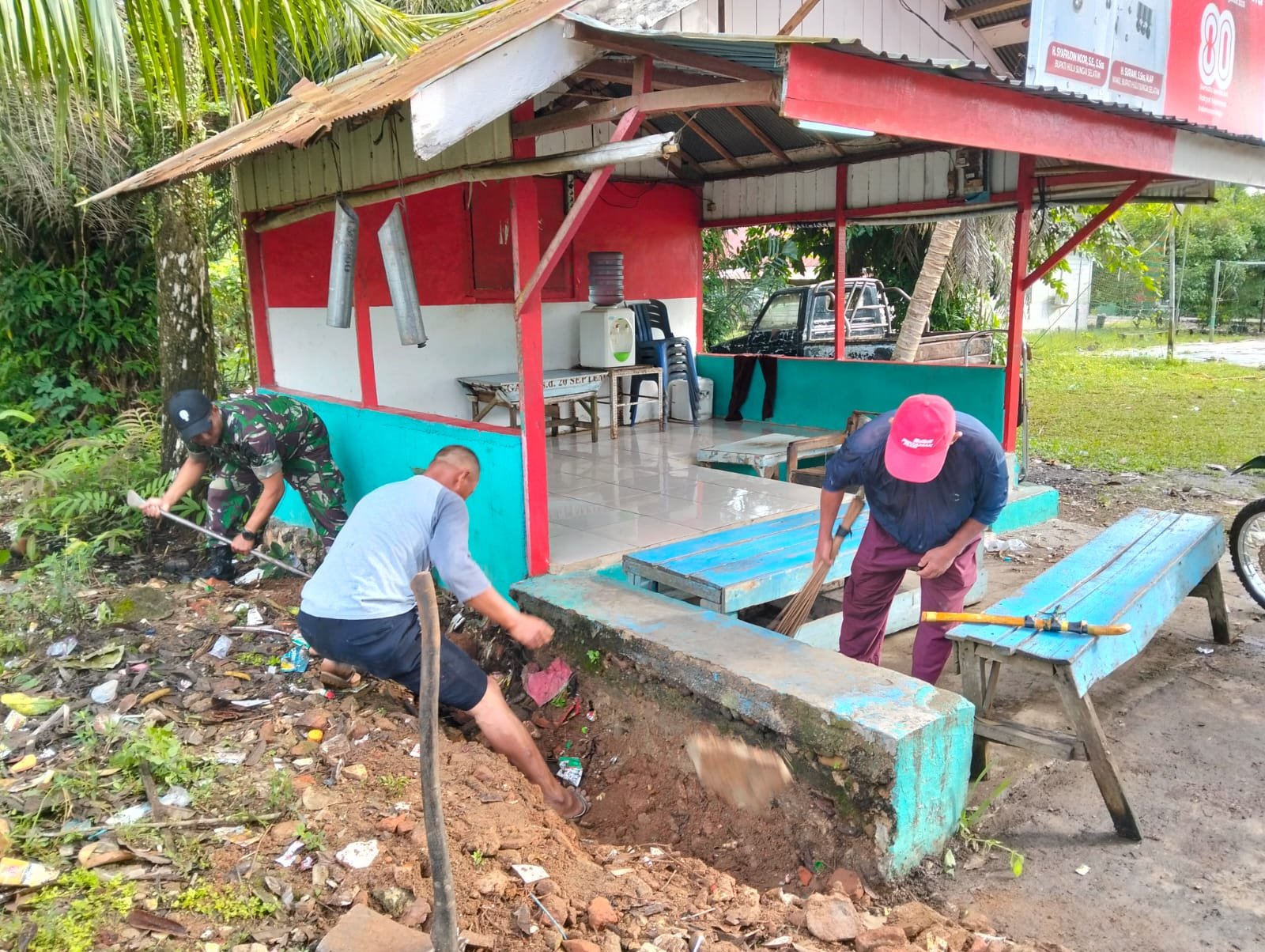 HULU SUNGAI SELATAN – Berikan kontribusi positif untuk masyarakat binaan Bintara Pembina Desa (Babinsa) Koramil 1003-04/Kandangan Sertu Adi Risdiyanto berikan contoh dan pelopori gotong royong pembersihan lingkungan Pos Keamanan Lingkungan (Pos Kamling) yang merupakan suatu tempat sarana masyarakat untuk menjaga lingkungan dikala malam hari sekaligus saling bersilaturahmi. Sabtu (13/9/25)