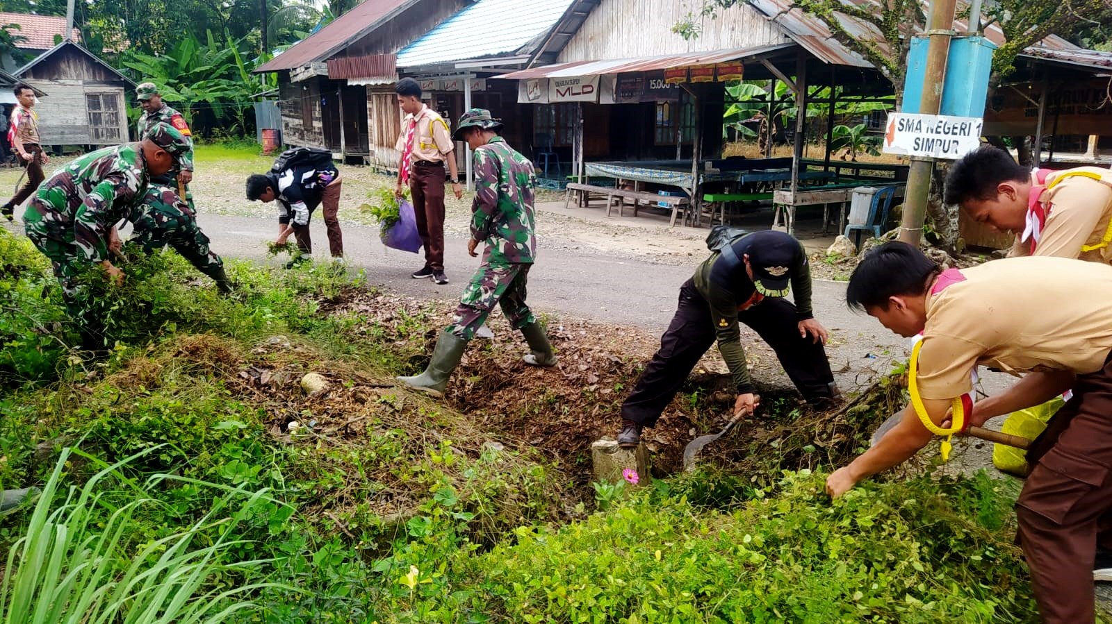 HULU SUNGAI SELATAN – Jajaran Bintara Pembina Desa (Babinsa) Koramil 1003-05/Simpur, yang dipimpin oleh Pelda Apandi, mengajak anak-anak SMPN Simpur dan masyarakat setempat untuk bergotong royong membersihkan lingkungan di Desa Simpur, Kecamatan Simpur, Kabupaten Hulu Sungai Selatan (HSS) pada Kamis (8/10/25). Kegiatan ini bertujuan untuk mencegah penyakit yang timbul dari tumpukan sampah dan lingkungan yang kotor, serta mengantisipasi banjir.