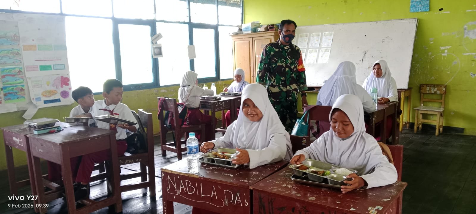 Barito Kuala – Babinsa Koramil 1005-03/Rantau Badauh, Koptu Irfan Fahmi, melaksanakan monitoring pendistribusian Program Makan Bergizi Gratis (MBG) di Kecamatan Rantau Badauh, Kabupaten Barito Kuala. Pada Senin, 09 Februari 2026. Program ini merupakan salah satu inisiatif pemerintah yang bertujuan memastikan anak-anak usia sekolah mendapatkan asupan gizi yang cukup untuk mendukung tumbuh kembang serta meningkatkan prestasi belajar mereka.