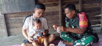 Babinsa Koramil 1005-11/Tabunganen Berikan Bantuan Nutrisi untuk Anak Asuh Penderita Stunting di Desa Tabunganen Kecil