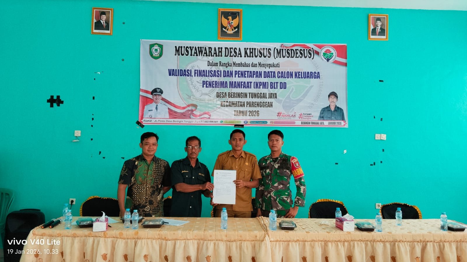Kotawaringin Timur – Babinsa Koramil 1015-07/Parenggean Pratu Ponidi menghadiri Musyawarah Desa (Musdes) penetapan Keluarga Penerima Manfaat (KPM) dan Bantuan Lansung Tunai Dana Desa (BLT-DD) untuk Triwulan I dan 2 TA. 2026, bertempat di Desa Beringin Tunggal Jaya, Kecamatan Parenggean Kab. Kotawaringin Timur, Senin (19/01/2026)
