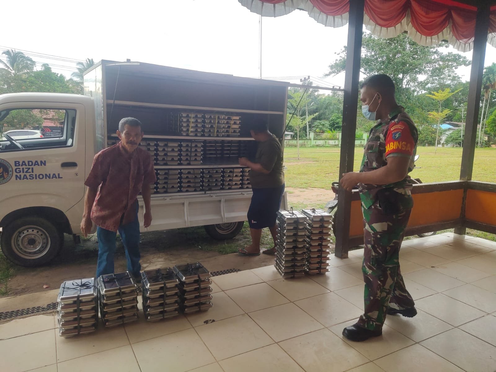 KETAPANG – Dalam upaya mendukung program pemerintah dalam peningkatan gizi anak sekolah, Babinsa Koramil 1203-01/Nanga Tayap, Sertu Jhoni Simanjuntak, melaksanakan kegiatan pengawasan dan pendampingan penyaluran Makan Bergizi Gratis (MBG) di wilayah Kecamatan Nanga Tayap, Rabu (22/10/2025).
