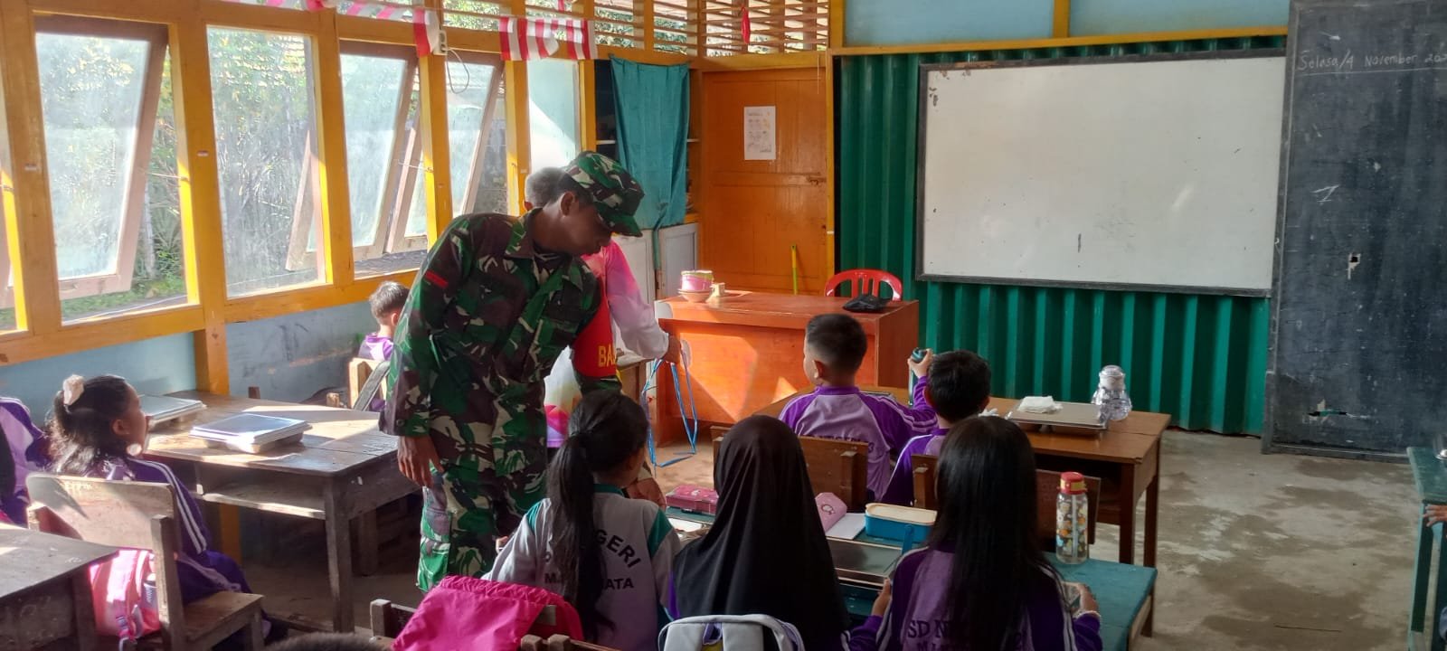 Ketapang – Dalam rangka mendukung program pemerintah dalam peningkatan gizi masyarakat, Babinsa Koramil 1203-06/Manis Mata, Pratu Suriyadi, melaksanakan kegiatan pendampingan dan pengawasan program Makan Bergizi Gratis (MBG) yang bertempat di Dapur MBG Kecamatan Manis Mata, Kabupaten Ketapang, Jumat (7/11/2025).