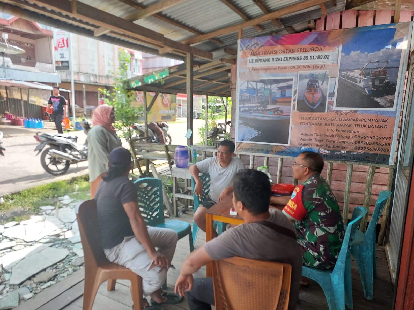 KAYONG UTARA – Dalam upaya menjaga keamanan dan ketertiban di wilayah binaan, Babinsa Koramil 1203-15/Teluk Batang, Sertu Abdul Wahab, melaksanakan kegiatan patroli dan komunikasi sosial (komsos) bersama masyarakat bertempat di warung milik Ibu Erna, Desa Teluk Batang, Kecamatan Teluk Batang, Kabupaten Kayong Utara, Sabtu (25/10/2025).