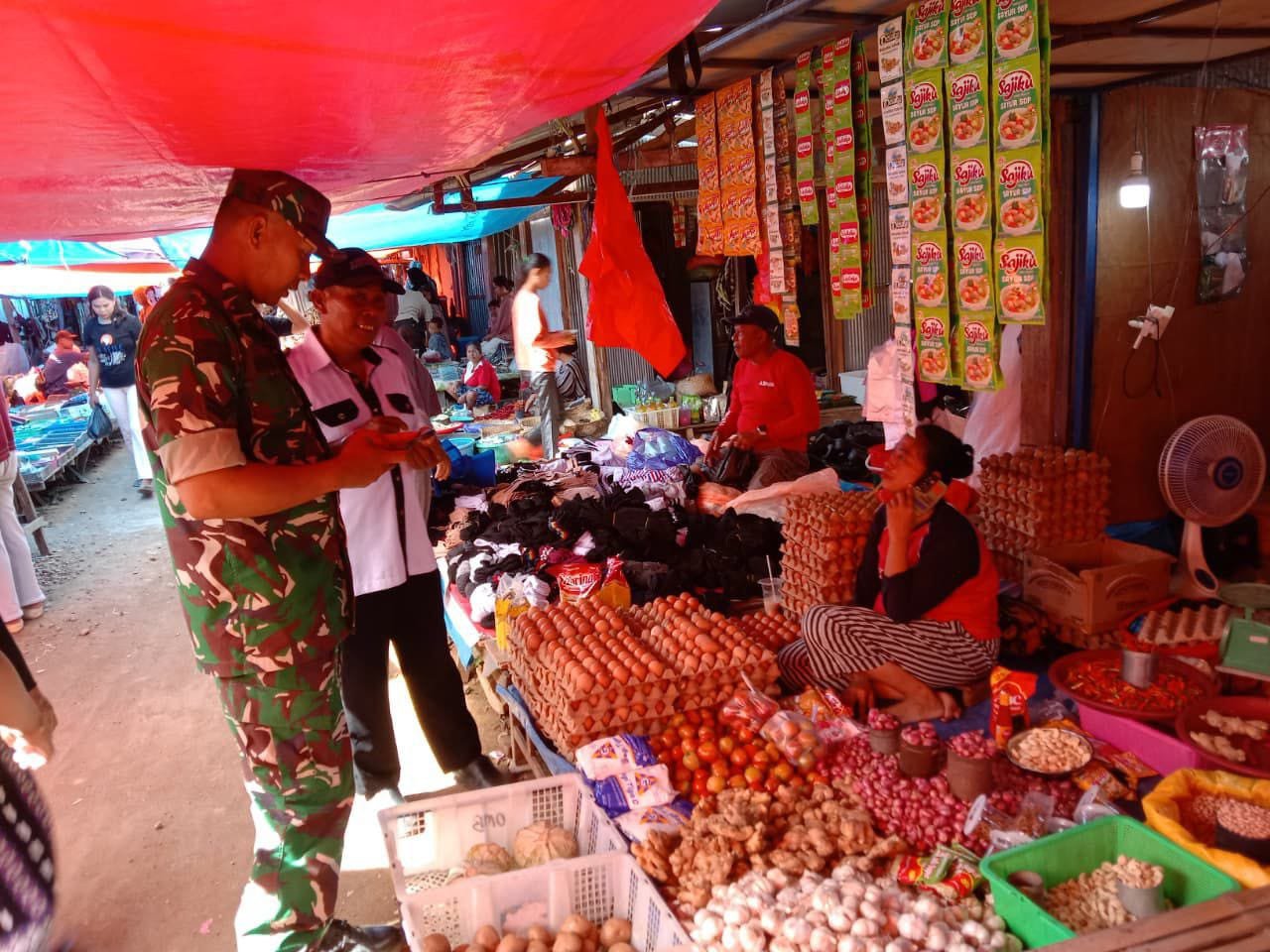 SIDRAP, 31 DESEMBER 2025 – Babinsa Koramil 01/Panca Lautang, Sertu Isman, melaksanakan kegiatan pemantauan ketersediaan dan harga bahan pokok menjelang akhir tahun, bertempat di Pasar Bilokka Desa Corawali Kecamatan Panca Lautang Kabupaten Sidenreng Rappang (Sidrap). Kegiatan ini merupakan bagian dari upaya TNI dalam mendukung keamanan pangan dan memastikan kesejahteraan masyarakat di wilayah tanggung jawabnya.