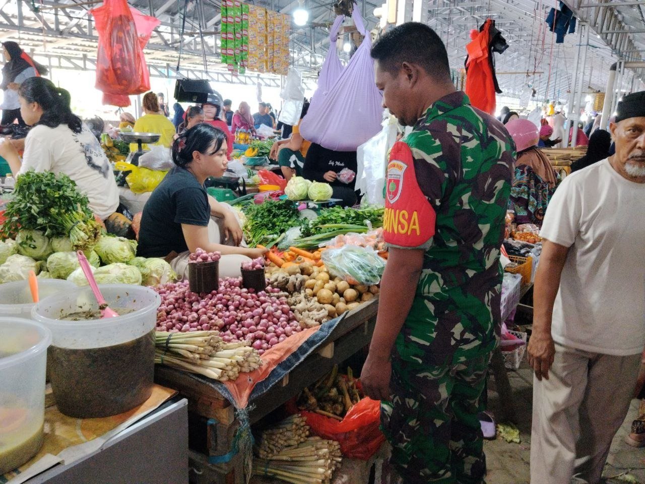 Sidrap – Dalam upaya mengantisipasi lonjakan harga dan potensi penimbunan bahan pokok, Babinsa Koramil 1420-04/Watang Pulu, Sertu Hasdi, turun langsung ke Pasar Lawawoi, Kelurahan Bangkai, Kecamatan Watang Pulu, Kabupaten Sidrap, Minggu (02/11/2025).