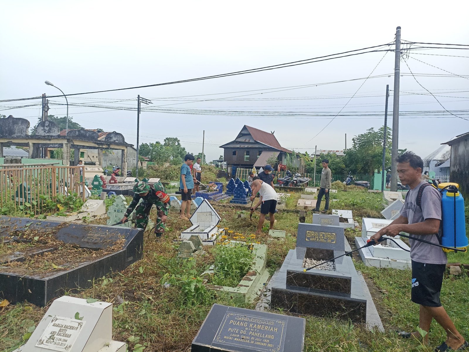Takalar – Babinsa Koramil 1426-03/Galut, Kodim 1426/Takalar Desa Aeng Batu-batu Serka Agus Haryanto mengajak perangkat Desa dan masyarakat melaksanakan kegiatan kerja bakti membersihkan Pekuburan Islam di Desa Aeng Batu-batu Kecamatan Galut, Kabupaten Takalar, Minggu, (16/02/2025).