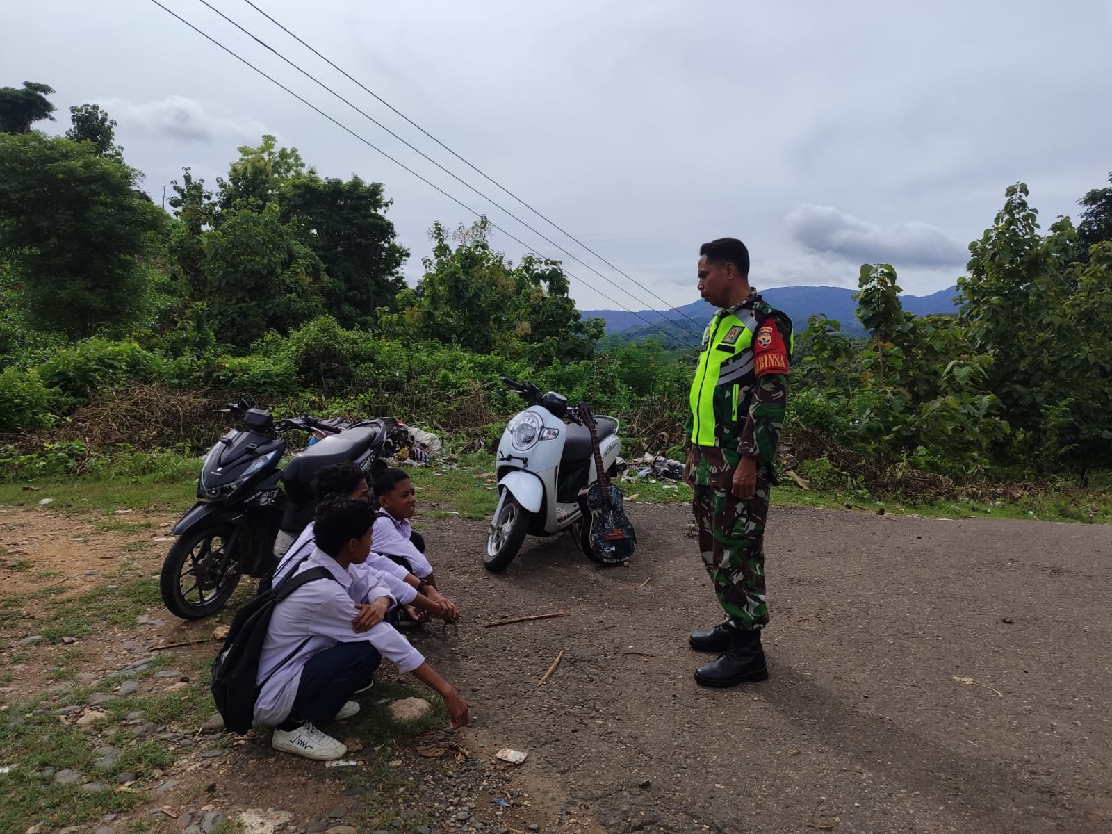 Ketiga pelajar tersebut diamankan oleh Serka Toto saat berkeliling memantau situasi di wilayah binaanya. Setelah diberikan arahan dan pembinaan mengenai pentingnya mengikuti kegiatan belajar mengajar, Serka Toto menyuruh mereka agar kembali masuk ke sekolah untuk melanjutkan pelajaran.