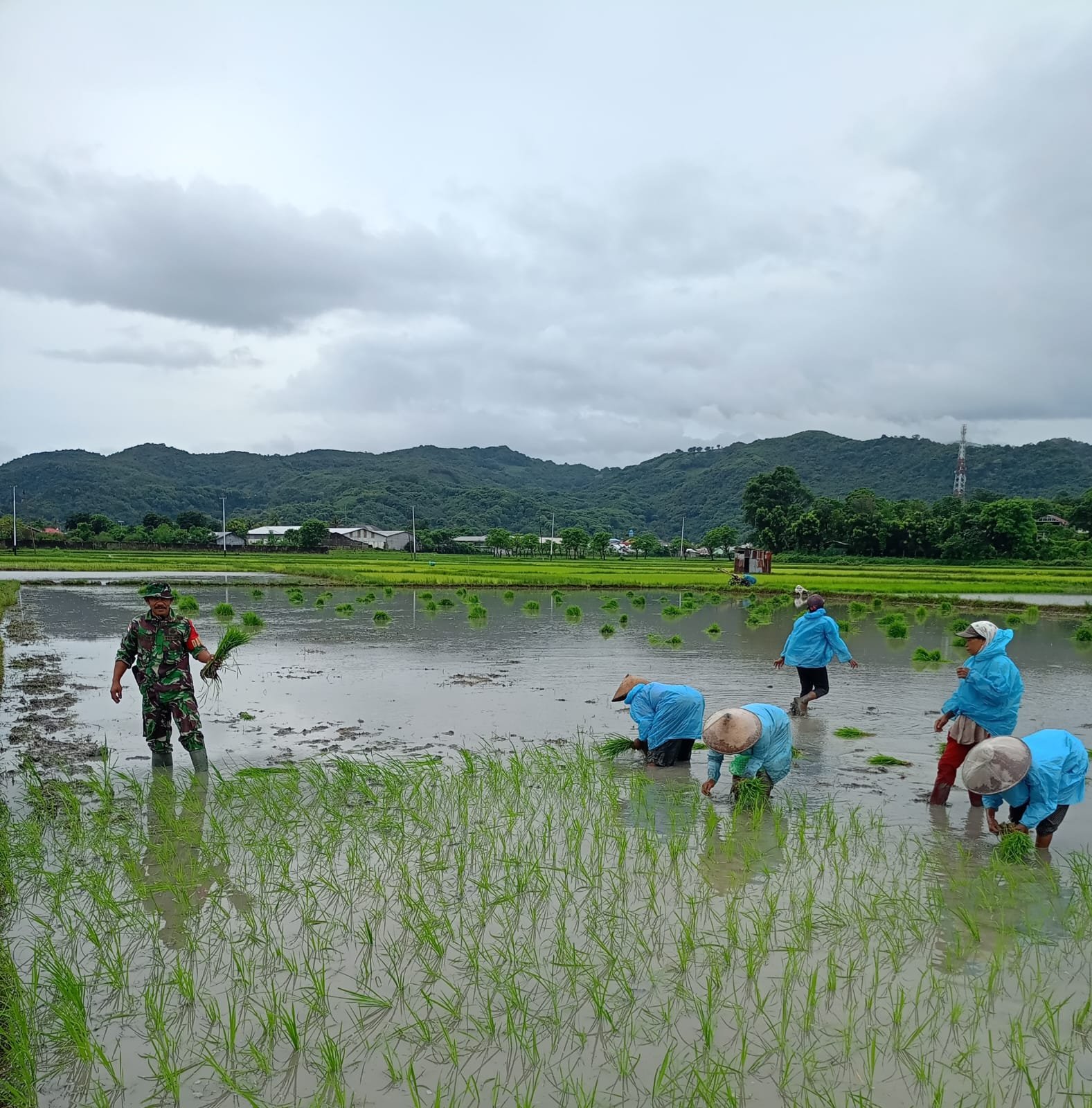 Kegiatan ini merupakan bagian dari tugas pendampingan Babinsa kepada para petani guna mendukung program swasembada pangan serta mempererat kemanunggalan TNI dengan rakyat. Dengan penuh semangat, Serka Jalaludin bersama para petani bahu-membahu menanam bibit padi di lahan persawahan milik warga.