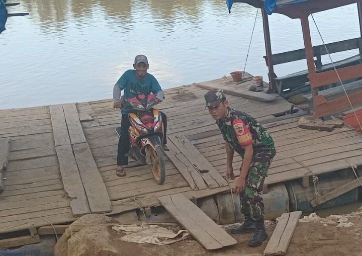 Dalam kegiatan tersebut, Babinsa meninjau langsung lokasi penyeberangan dengan menyapa warga serta memastikan bahwa aktivitas penyeberangan berjalan aman dan kondusif.