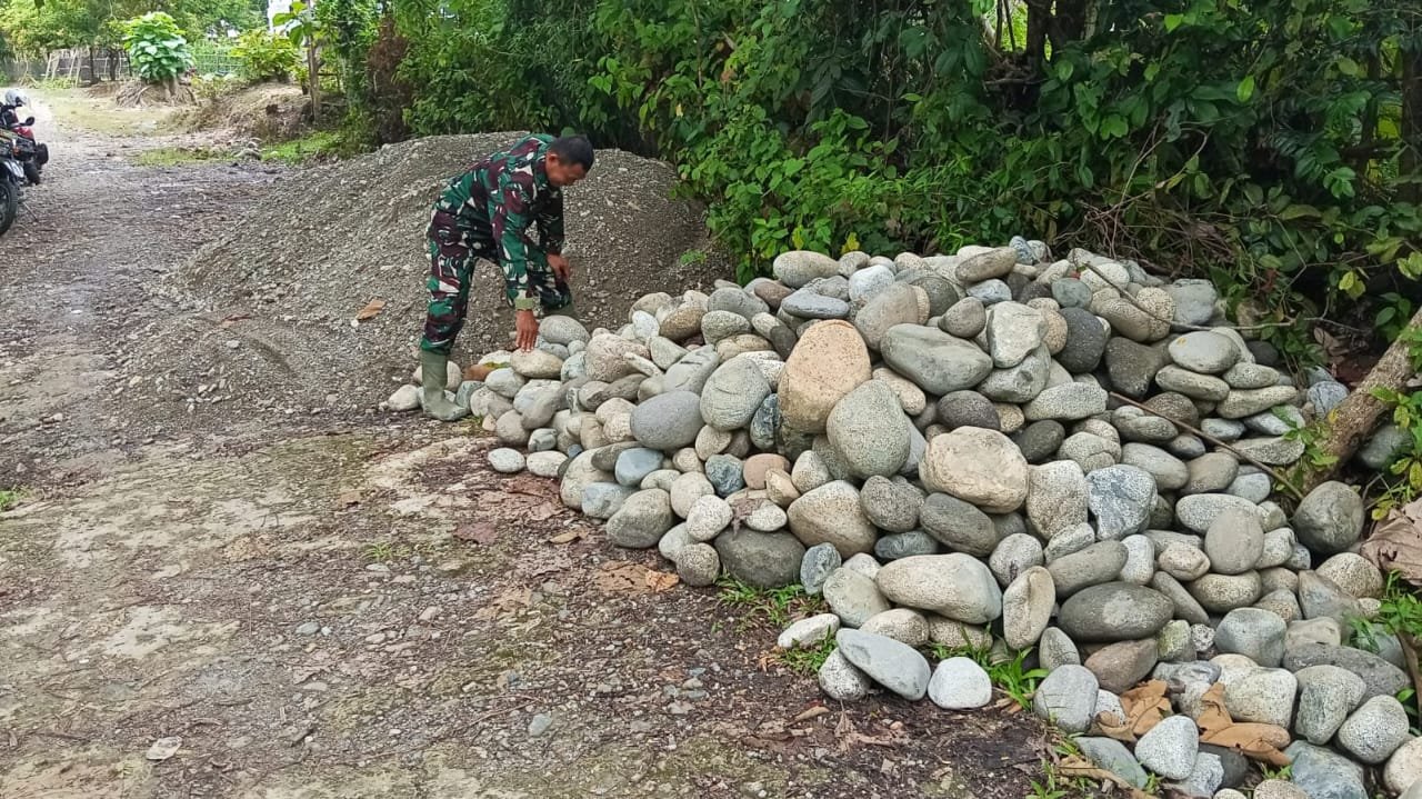 “Jika kita kekurangan material, sudah pasti menghambat proses pembangunan, alhasil tidak sesuai target waktu yang ditentukan,” ujar Danramil”.