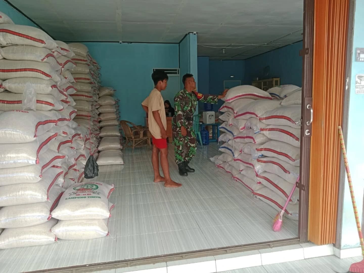 Sertu Rachmat menerangkan secara singkat “Saat ini saya bersilkaturahmi serta melaksanakan monitoring pengecekan harga dan ketersediaan stok beras di Grosir Beras Mr.Jaya didapatkan data secara langsung bahwa saat ini stok beras tersedia bisa mencukupi hingga pertengahan bulan Maret 2025 apa lagi saat ini sudah datang kiriman beras dari kilang padi, juga harga saat ini ada kenaikan namun masih dibawah batas HET, kemudian dalam pengecekan tidak ada ditemukan beras busuk ataupun berkutu”,