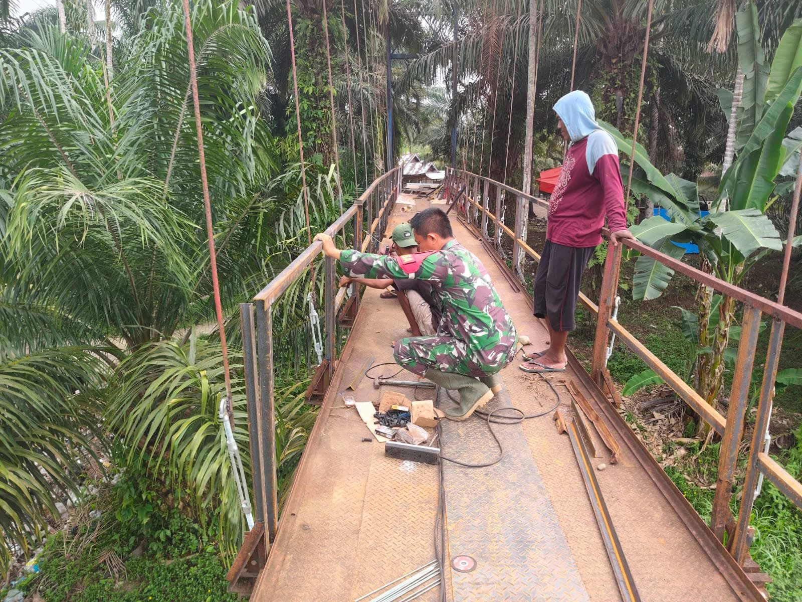 Babinsa Koramil 425-04/Semidang Alas Maras Terlibat dalam Kegiatan Pengelasan Jembatan