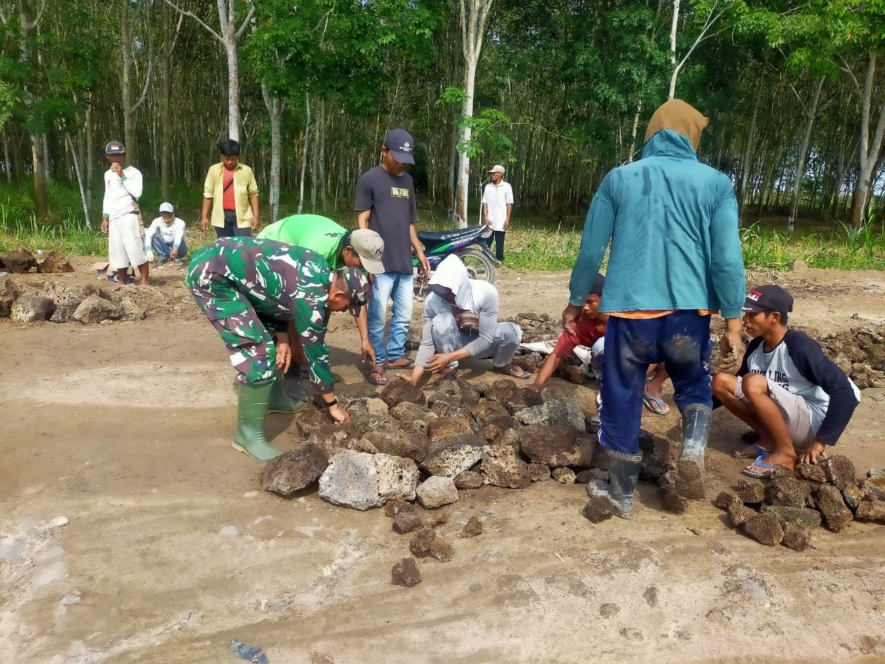 Sebagai upaya yang dilakukan Babinsa dengan mengajak Kepala Desa dan Perangkatnya, serta warga Desa secara bahu membahu bergotong royong untuk kenyamanan Masyarakat yang menggunakan jalan tersebut.