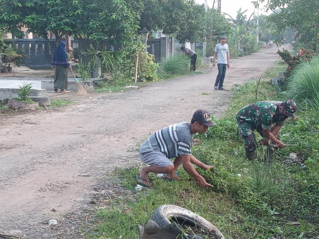 Meraksa Aji (Tulang Bawang) — Babinsa Koramil 426-05 PA, Kodim 0426 Tulang Bawang, bersama masyarakat melaksanakan karya bakti pembersihan kiri kanan jalan bertempat di Kampung Kecubung Raya, Kecamatan Meraksa Aji, Kabupaten Tulang Bawang, Rabu 15 Januari 2025.
