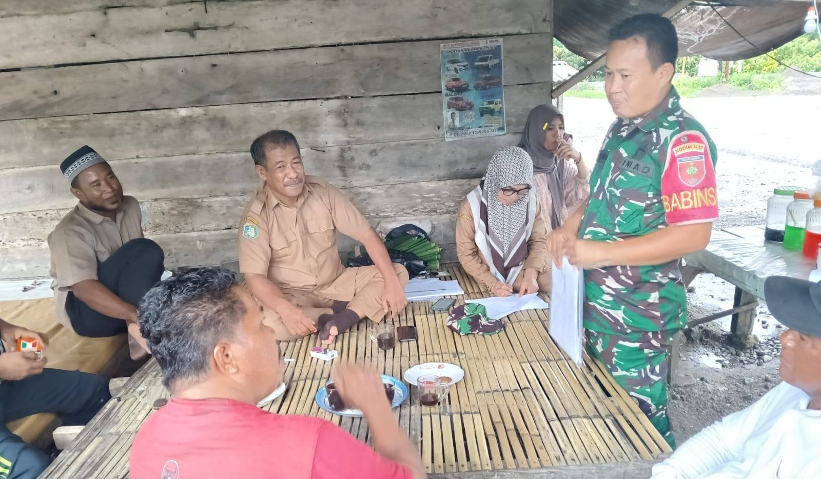Pasangkayu – Dalam upaya mendukung keberhasilan program swasembada pangan, Babinsa Koramil-02 Bambalamotu, Kodim 1427/Pasangkayu, Sertu Amiruddin, mengadakan kegiatan Komunikasi Sosial (Komsos) bersama Penyuluh Pertanian Lapangan (PPL) Desa Kasoloang, Nurdin, S.P., dan para Ketua Kelompok Tani se-Desa Kasoloang. Pertemuan yang berlangsung di Dusun Torenda, Desa Kasoloang, Kecamatan Bambaira, Kabupaten Pasangkayu, ini membahas penyusunan Rencana Definitif Kebutuhan Kelompok (RDKK).