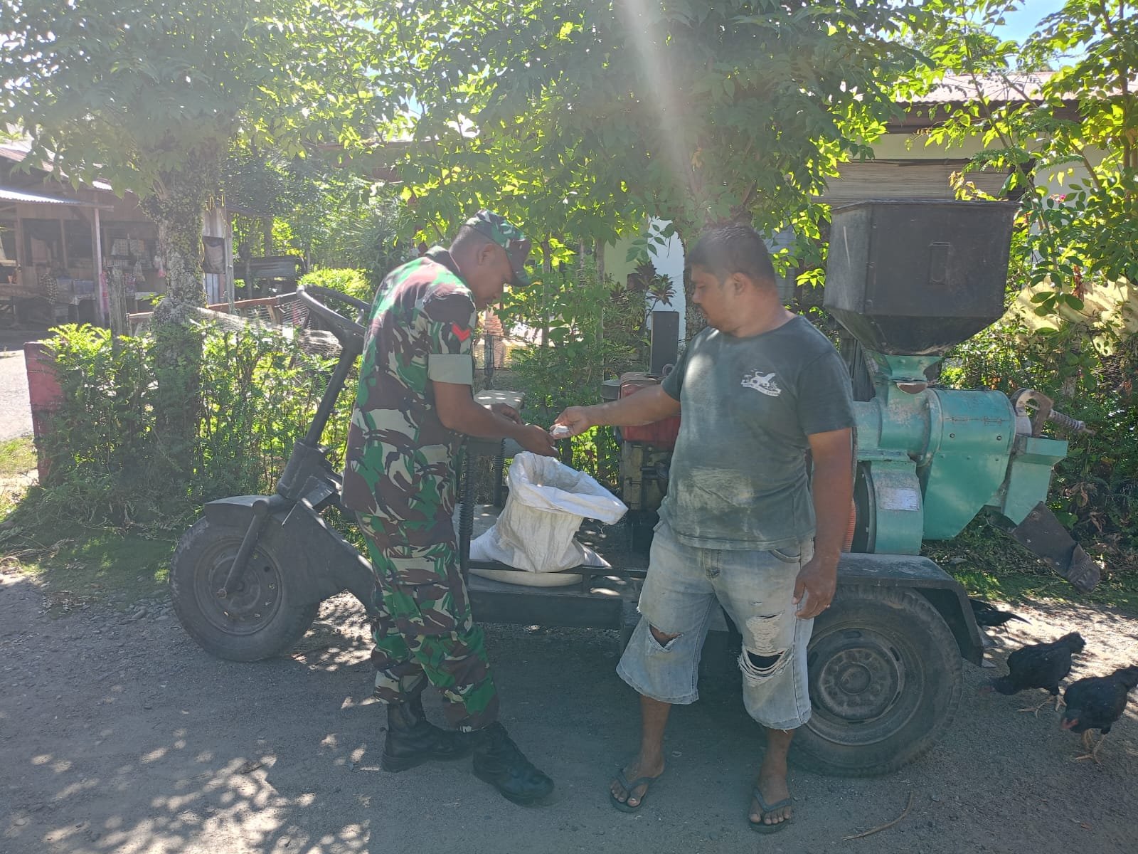 Selain memantau aktivitas penggilingan, Babinsa juga berinteraksi langsung dengan pemilik usaha dan warga sekitar untuk mengetahui kendala yang dihadapi, baik terkait teknis penggilingan maupun kondisi hasil panen. Komunikasi tersebut menjadi sarana untuk mempererat hubungan antara TNI dan masyarakat.