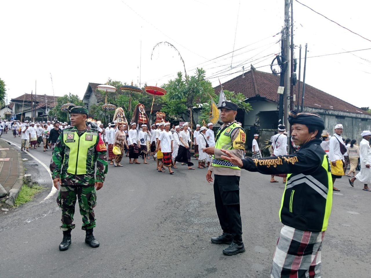Klungkung,- Babinsa jajaran Koramil 1610-01/Klungkung melaksanakan pengawalan dan pengamanan kegiatan upacara keagamaan, Sabtu ( 28/12/24 ).