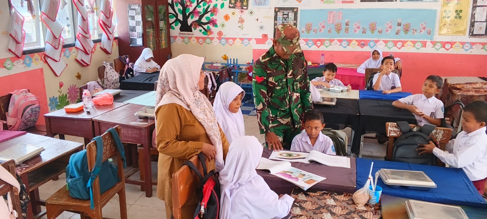 Salah seorang guru di SD Negeri 1 Panga menyampaikan apresiasi atas perhatian yang diberikan oleh Babinsa terhadap pendidikan karakter bagi para siswa.
