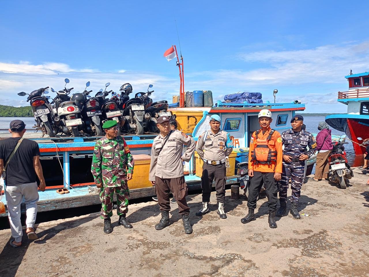 Kegiatan ini dilakukan untuk memantau aktivitas masyarakat yang menggunakan jasa transportasi laut, sekaligus memberikan rasa aman dan nyaman bagi para penumpang maupun awak kapal selama momentum Nataru. Babinsa turut berkoordinasi dengan pihak terkait guna mengantisipasi potensi gangguan keamanan dan ketertiban di area pelabuhan.