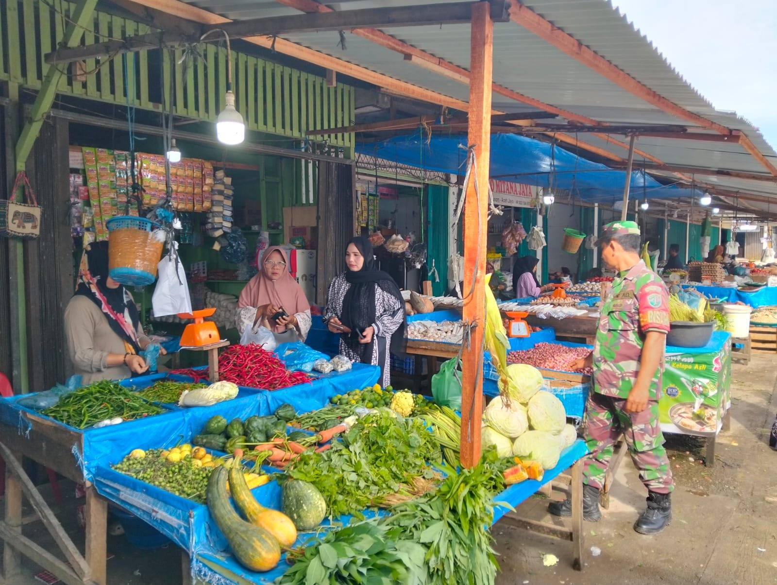 Babinsa menyampaikan bahwa pemantauan harga kebutuhan pokok ini dilakukan secara rutin untuk mengantisipasi adanya lonjakan harga yang dapat berdampak pada kondisi ekonomi masyarakat.