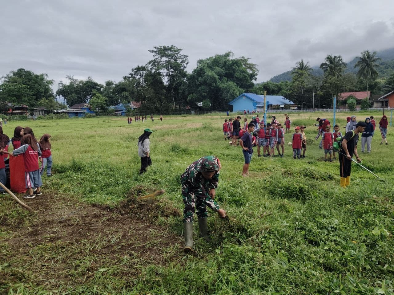 Maros, 24 Januari 2025 – Dalam wujud kepedulian terhadap kebersihan lingkungan, Bintara Pembina Desa (Babinsa) Desa Laiya, Serka Muhammad Idris, bersama Mahasiswa Kuliah Kerja Nyata (KKN) dari Universitas Islam Negeri (UIN) Makassar dan siswa Sekolah Dasar Negeri 41 Laiya, melaksanakan kerja bakti membersihkan lapangan sepak bola Desa Laiya, Kecamatan Camba, Kabupaten Maros, Jumat (24/01).
