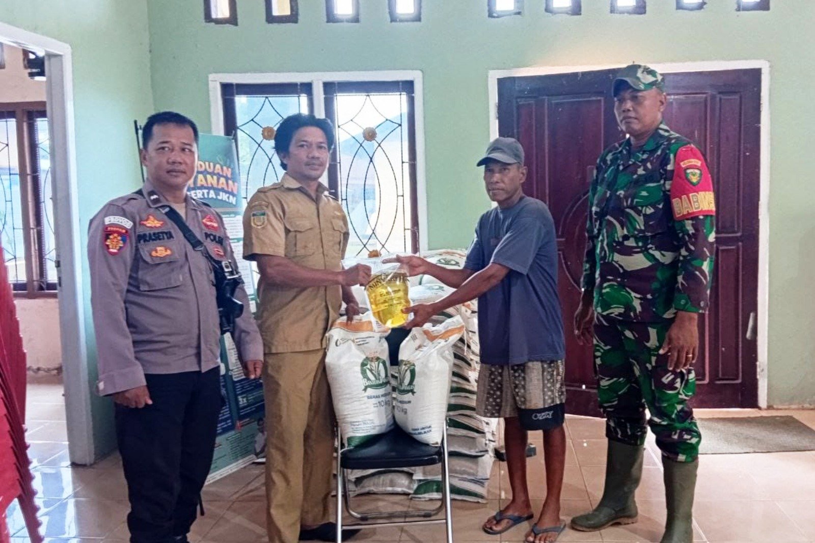 Penyaluran bantuan pangan tersebut berlangsung dengan tertib dan lancar serta mendapat pengamanan dan dukungan dari berbagai pihak. Turut hadir dalam kegiatan tersebut Bhabinkamtibmas Polsek Semangga Aipda Eko Prasetya serta dua orang petugas dari Bulog Kabupaten Merauke, sebagai bentuk sinergi dalam mendukung program ketahanan pangan dan kesejahteraan masyarakat.
