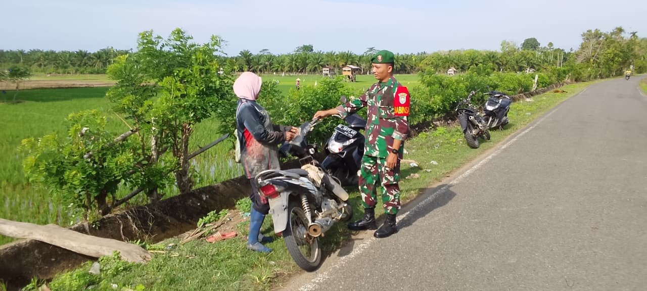 ACEH JAYA – Aktivitas panen padi di Desa G. Harapan, Kecamatan Panga, Rabu (04/03/2026), mendapat pendampingan langsung dari Babinsa Koramil 05/Panga Kodim 0114/Aceh Jaya, Serma Syukriadi. Kehadirannya di tengah sawah menjadi bagian dari komunikasi sosial sekaligus upaya mendukung ketahanan pangan.
