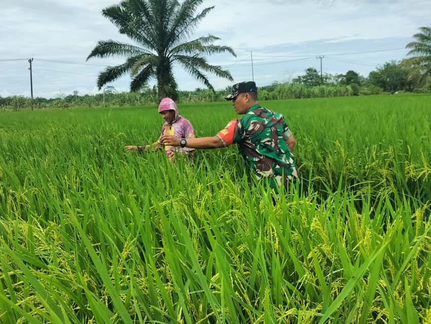ACEH JAYA – Sebagai wujud nyata dukungan terhadap sektor pertanian lokal, Babinsa Koramil 05/Panga Kodim 0114/Aceh Jaya, Kopral Satu (Koptu) Izrillah, melaksanakan kegiatan komunikasi sosial (Komsos) sekaligus menggabungkan perkembangan tanaman padi milik warga binaan di Desa Tuwi Kareung, Kecamatan Panga, Senin (28/09).