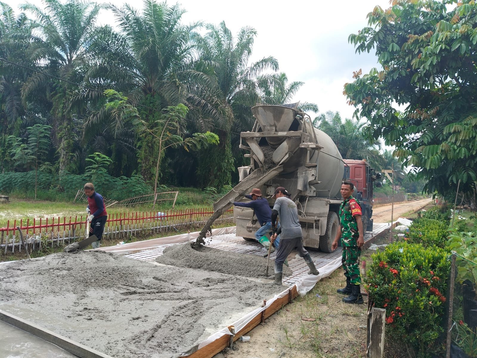 Babinsa Pantau Proyek Semenisasi Jalan Desa Lada Mandala Jaya, Pastikan Aman dan Tertib