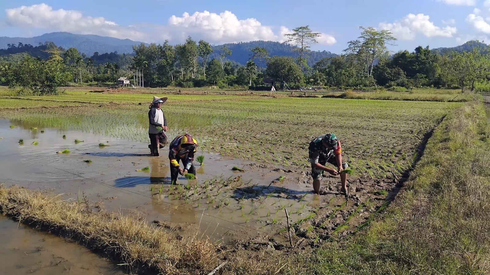 Kegiatan pendampingan ini dilakukan sebagai bentuk kepedulian Babinsa terhadap para petani di wilayah binaan, sekaligus untuk memberikan motivasi agar masyarakat tetap semangat dalam mengolah lahan pertanian. Penanaman padi dimulai pada masa tanam saat ini dengan harapan hasil panen dapat diperoleh sekitar tiga bulan ke depan.