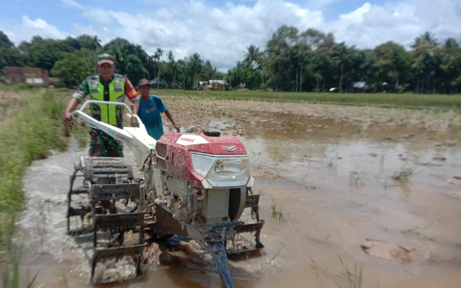 ACEH JAYA – Komitmen TNI dalam mendukung sektor pertanian dan ketahanan pangan kembali ditunjukkan oleh Serka Parwoto, Babinsa Koramil 03/Setia Bakti Kodim 0114/Aceh Jaya. Dengan semangat pendampingan, Serka Parwoto turut serta membantu Bapak Ibnu Hajar (54 tahun), anggota Kelompok Tani Rambung Raya, dalam membajak lahan sawahnya.