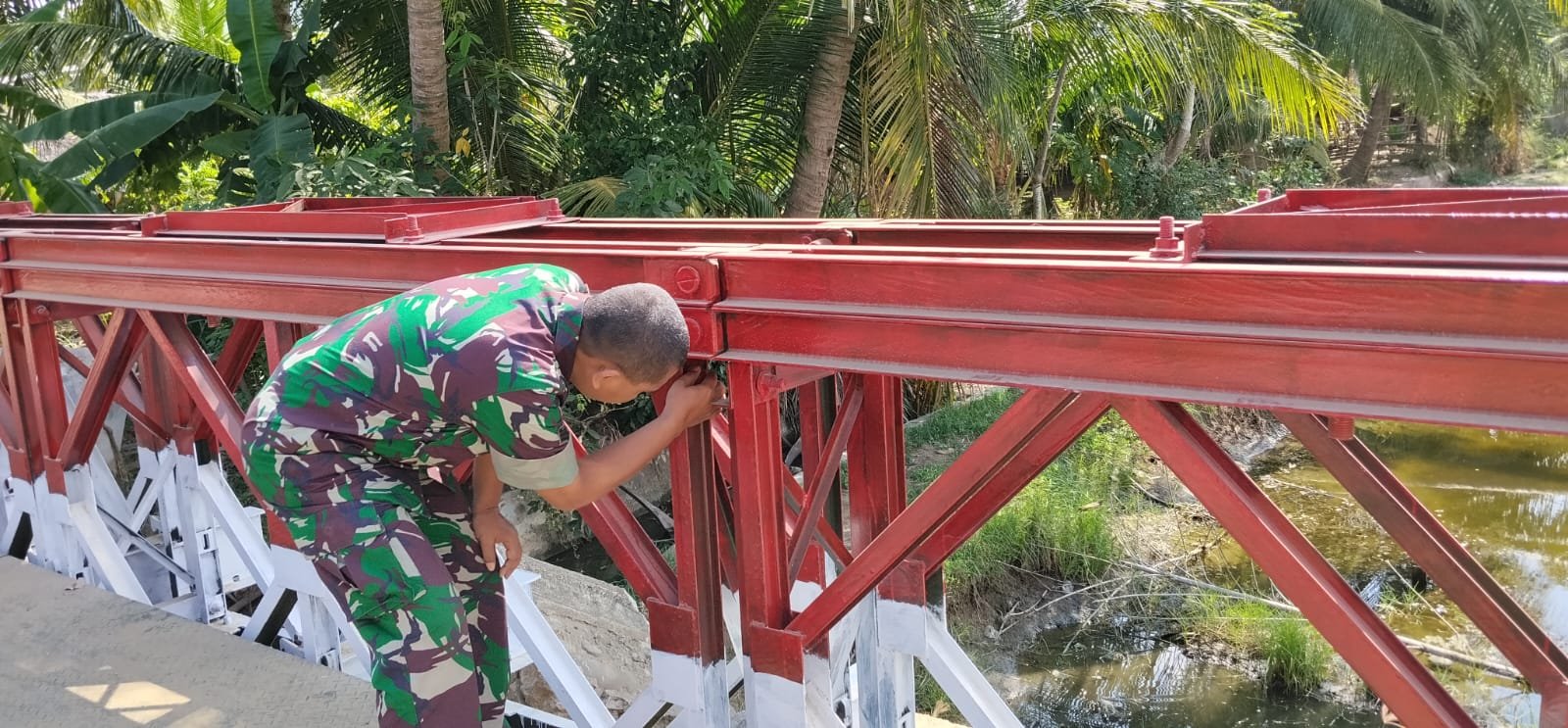 Aceh Utara – Babinsa jajaran Koramil di wilayah Kecamatan Dewantara melaksanakan patroli pengecekan Jembatan Bailey yang menghubungkan Desa Bangka Jaya dan Desa Bluka Teubai. Kegiatan ini dilakukan sebagai upaya menjaga keamanan serta kelancaran akses transportasi masyarakat. Selasa (24/3/2026).