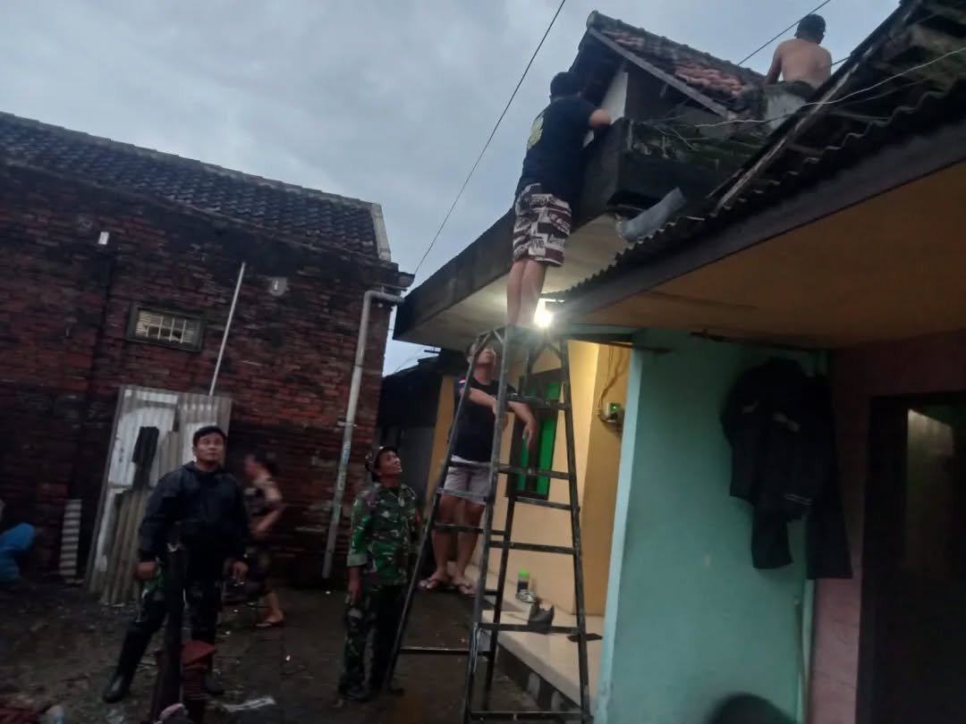 Anggota Koramil 0819/10 Bangil yang dipimpin langsung oleh Batuud, Peltu Sholeh bersama 11 anggota Babinsa melaksanakan kegiatan perbantuan wilayah yang terdampak angin puting beliung di Dusun Kalikunting RT 14 RW 05 dan Dusun Keputeran RT 08 RW 02 Desa Tambakan, Kec. Bangil Kab. Pasuruan. Selasa Sore (28/01/25).