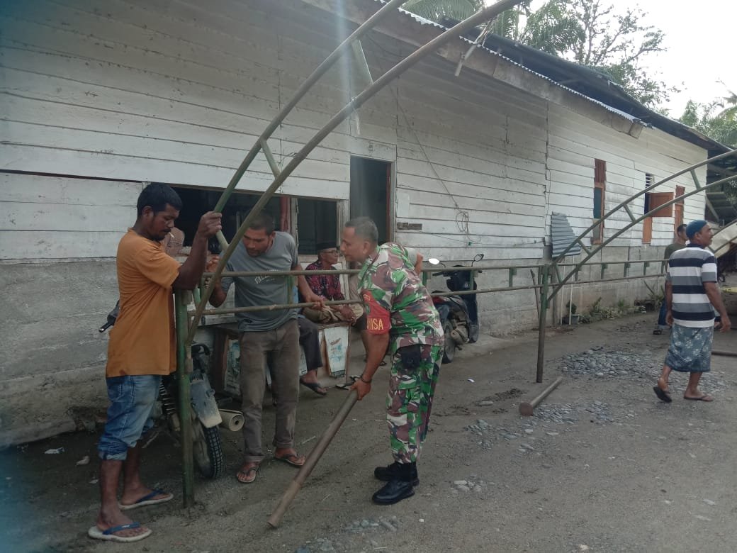 ACEH JAYA – Semangat kebersamaan dan kepedulian terhadap lingkungan sekitar kembali ditunjukkan oleh Babinsa Koramil 06/Teunom, Kodim 0114/Aceh Jaya, Serka Muhammad Daud. Ia bersama dengan masyarakat Desa Blang Baro, Kecamatan Teunom, Kabupaten Aceh Jaya, melaksanakan kegiatan gotong royong untuk membantu Bapak Nasir mendirikan teratak (gubuk/tempat sementara) yang akan digunakan sebagai bagian dari acara kenduri di desa tersebut, Rabu (30/07).