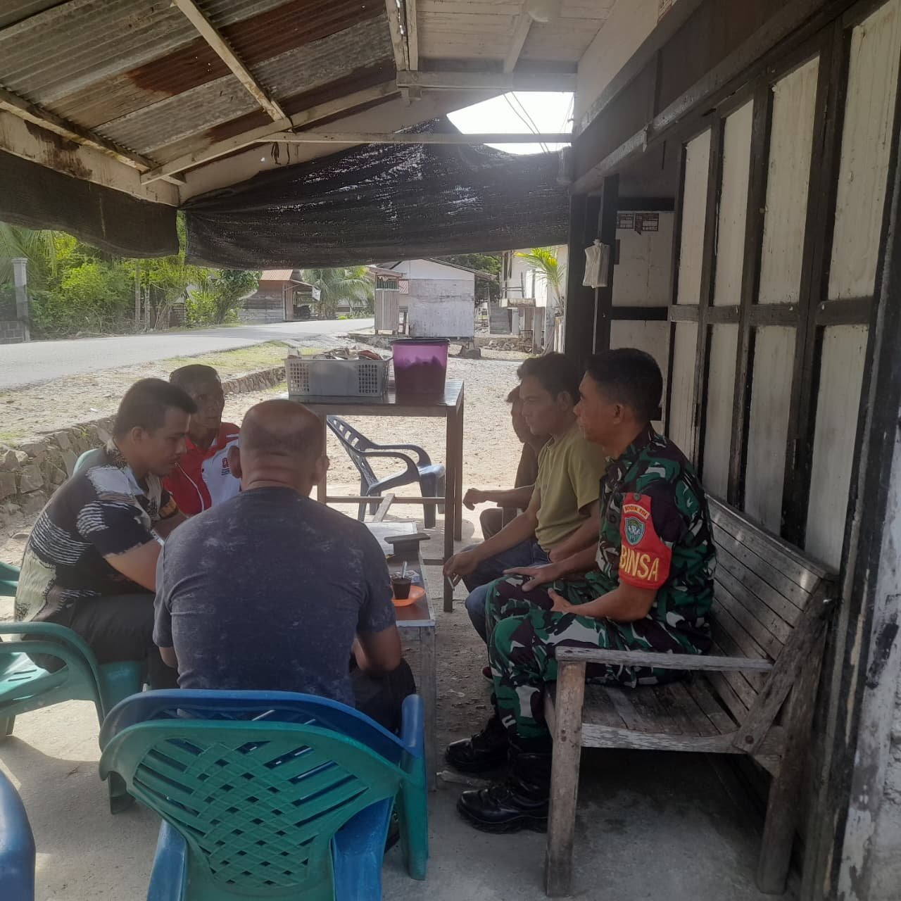 ACEH JAYA – Babinsa Koramil 06/Teunom Kodim 0114/Aceh Jaya, Koptu Ardika, melaksanakan kegiatan “saweu keude kopi” atau menyapa di kedai kopi bersama Bapak Keuchik Rahimudin dan masyarakat Desa Rambong Payong, Kecamatan Teunom, Kabupaten Aceh Jaya Sabtu (20/09). Dalam kesempatan yang akrab tersebut, Koptu Ardika tidak hanya menjalin silaturahmi, tetapi juga aktif mensosialisasikan informasi mengenai penerimaan Calon Siswa (Secata) PK dan Calon Bintara (Secaba) PK TNI AD Tahap II TA 2025 kepada warga setempat.