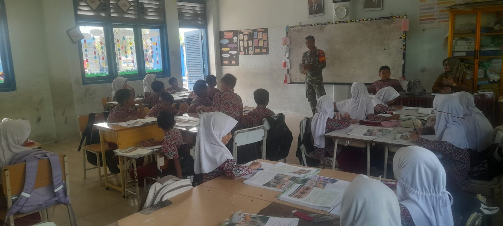 ACEH JAYA – Suasana belajar di SDN 4 Teunom, Kecamatan Teunom, Kabupaten Aceh Jaya, pada Rabu (29/4/2026) terlihat lebih hidup dari biasanya. Di tengah aktivitas sekolah, para siswa dan siswi mendapatkan pembelajaran tambahan yang berbeda, yakni materi Wawasan Kebangsaan (Wasbang) yang disampaikan langsung oleh anggota Koramil 06/Teunom dan Posramil Pasie Raya Kodim 0114/Aceh Jaya, Sertu Pujianto dan Kopda Baihaqi.