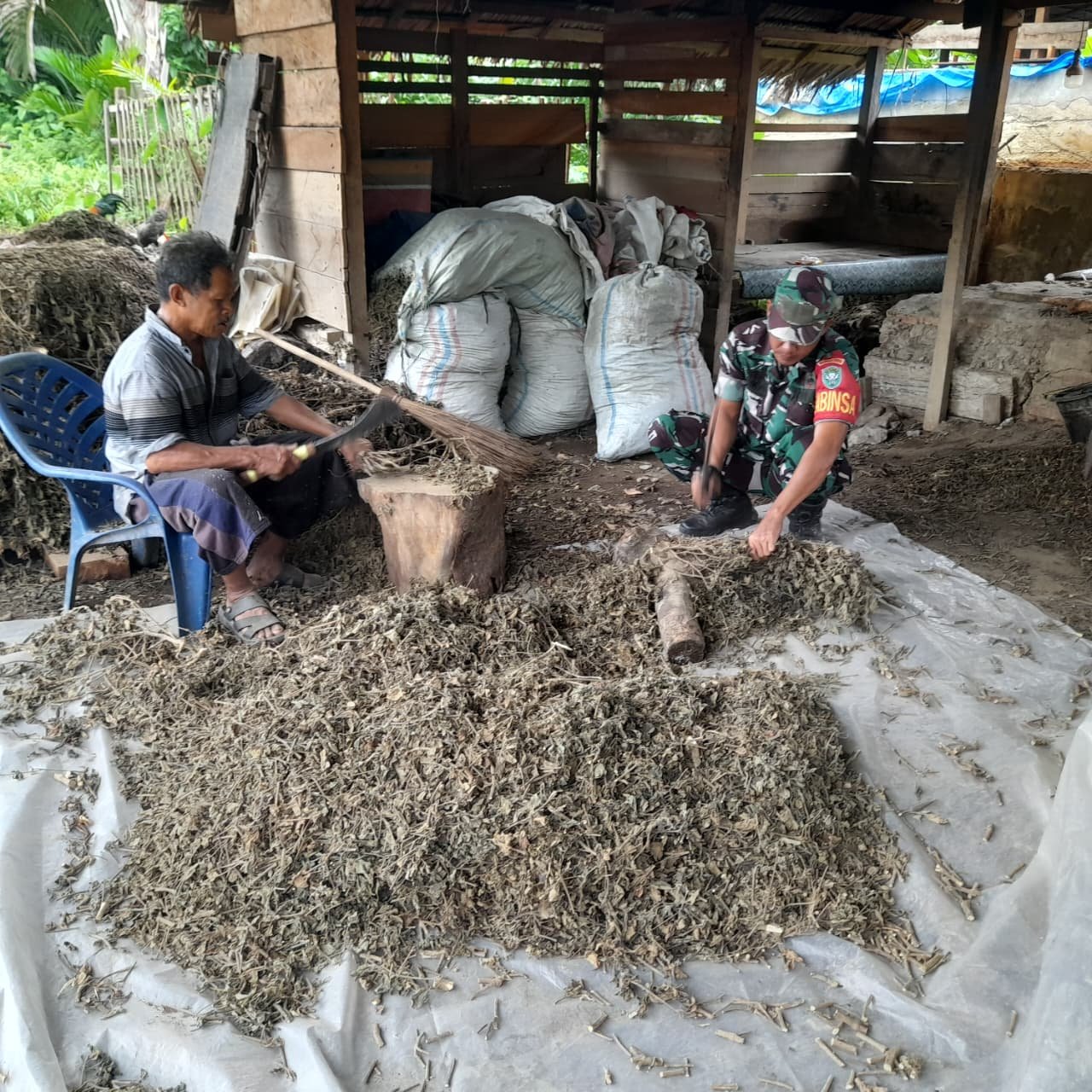 ACEH JAYA – Kehadiran Babinsa Koramil 06/Teunom, Kodim 0114/Aceh Jaya, Koptu Ardika, di Desa Rambong Payong, Kecamatan Teunom, Kabupaten Aceh Jaya, menunjukkan sinergi antara TNI dengan masyarakat, khususnya dalam mendukung sektor pertanian. Koptu Ardika terlihat aktif membantu Bapak Nandin (51 tahun), seorang petani setempat, dalam proses memotong daun nilam yang telah berhasil dipanen.