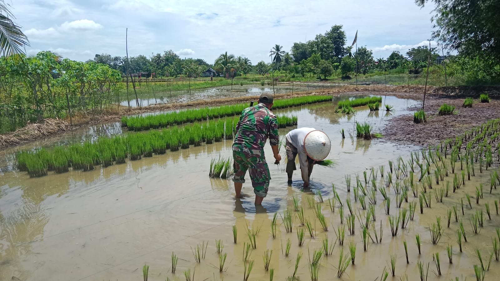 Pendampingan ini bukan sekadar memberi arahan, tetapi juga ikut serta mengolah tanah dan menanam padi. Hal tersebut menjadi bukti nyata peran Babinsa sebagai ujung tombak TNI di wilayah, yang selalu hadir bersama rakyat dalam mendukung ketahanan pangan nasional.