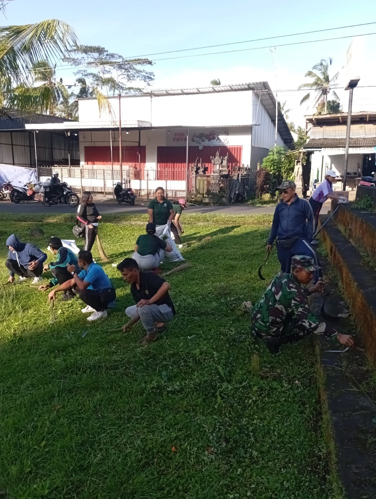 Kegiatan Gotong royong tersebut difokuskan pada pembersihan rumput, sampah, serta penataan area lapangan agar lingkungan tetap bersih, rapi, dan nyaman menjelang pelaksanaan rangkaian Hari Raya Nyepi.