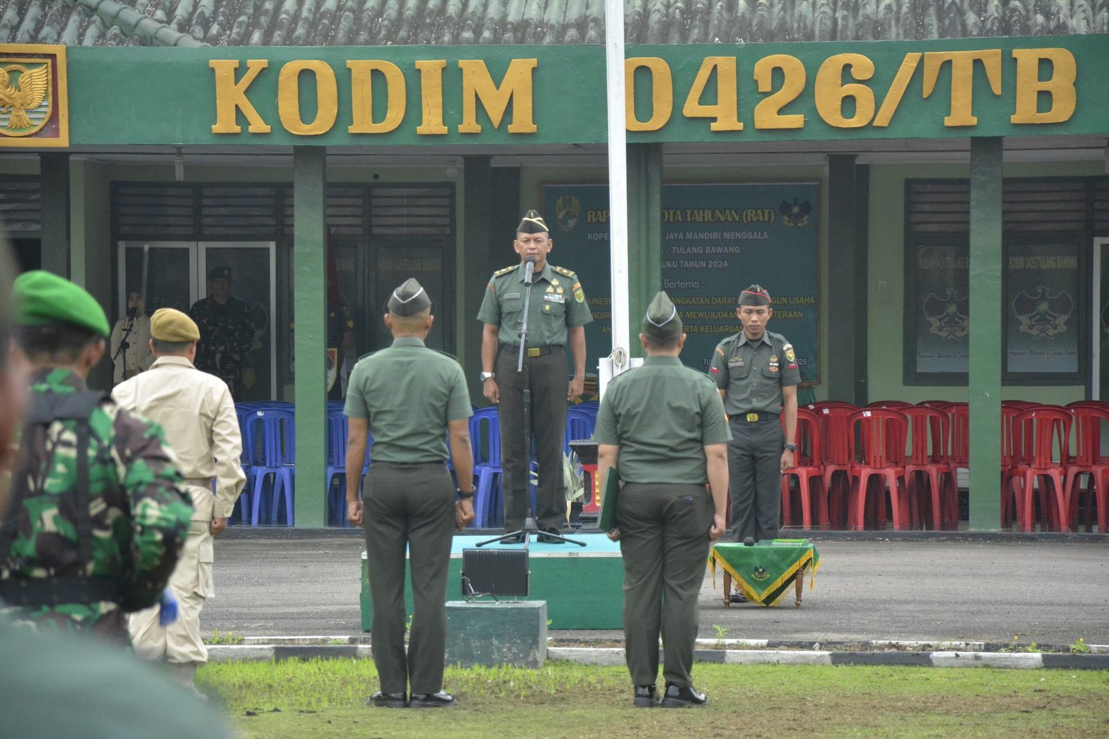 Menggala (Tulang Bawang) — Kodim 0426 Tulang Bawang, menggelar upacara 17-an di lapangan Makodim, di Jl Lintas Timur Sumatera, KM 113, Kampung Bujung Tenuk, Kecamatan Menggala, Kabupaten Tulang Bawang, Senin 17 Februari 2025.