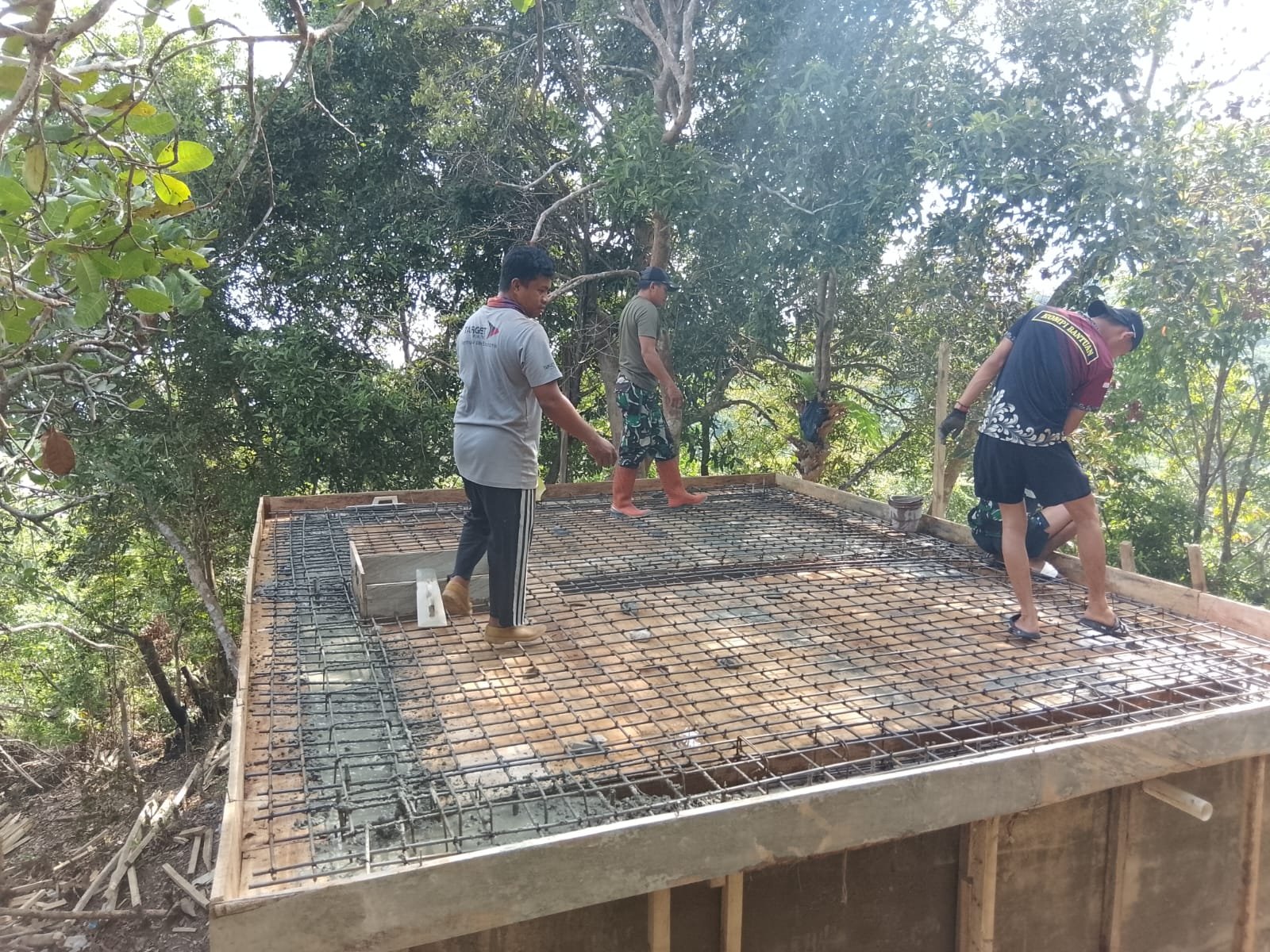 Pengerjaan yang dilakukan oleh personel Satgas bersama warga menunjukkan progres yang signifikan, termasuk pada tahap pengecoran atap bak penampungan air.