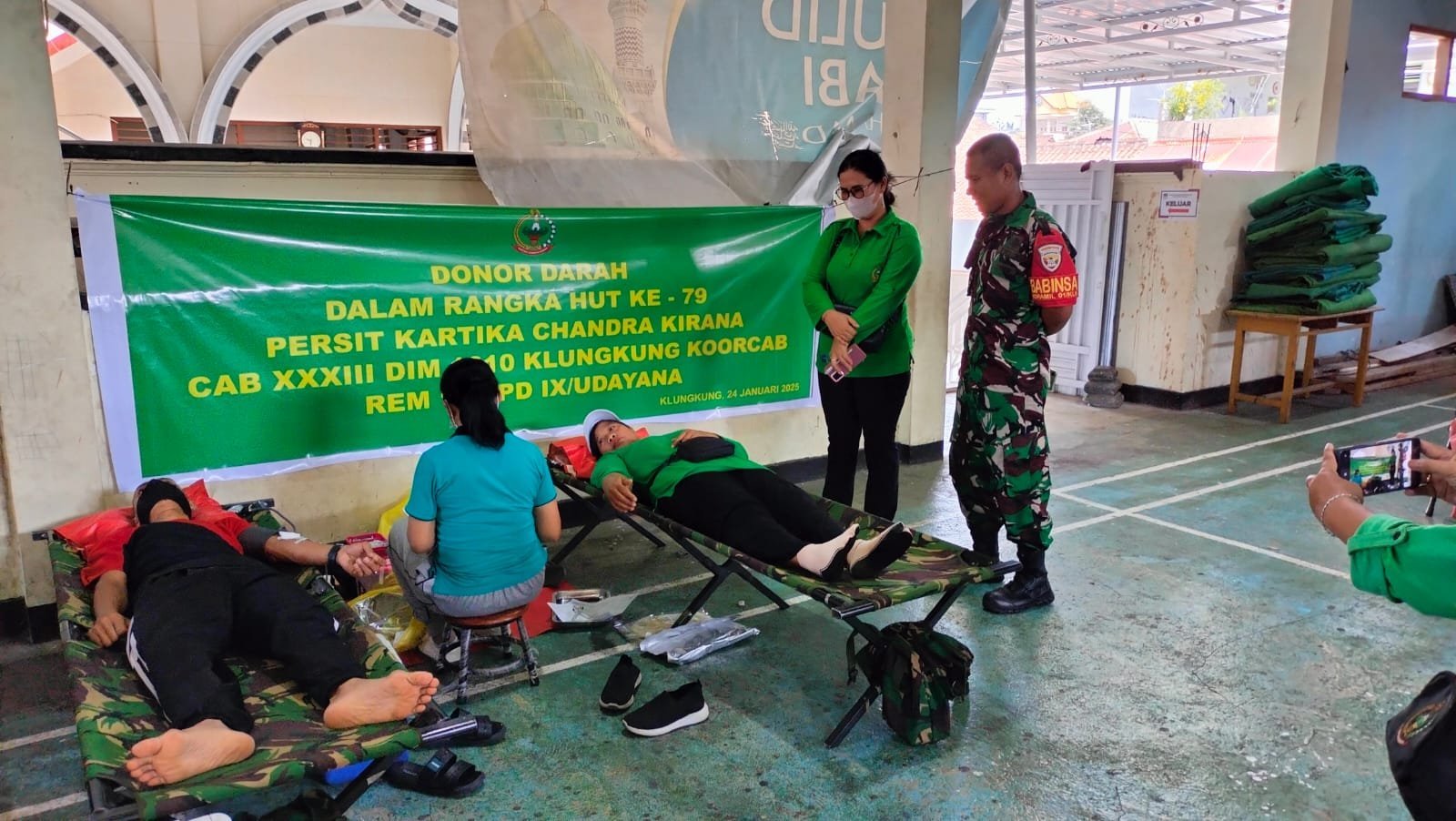 Klungkung,- Aksi sosial donor darah dalam rangka peringatan HUT Ke 79 Persit Kartika Chandra Kirana kembali digelar pagi ini. Kali ini kegiatan donor darah tersebut dilaksanakan di Gedung Serba Guna Masjid Nurul Huda Kampung Gelgel Kecamatan Klungkung Sabtu ( 25/01/2025 ).