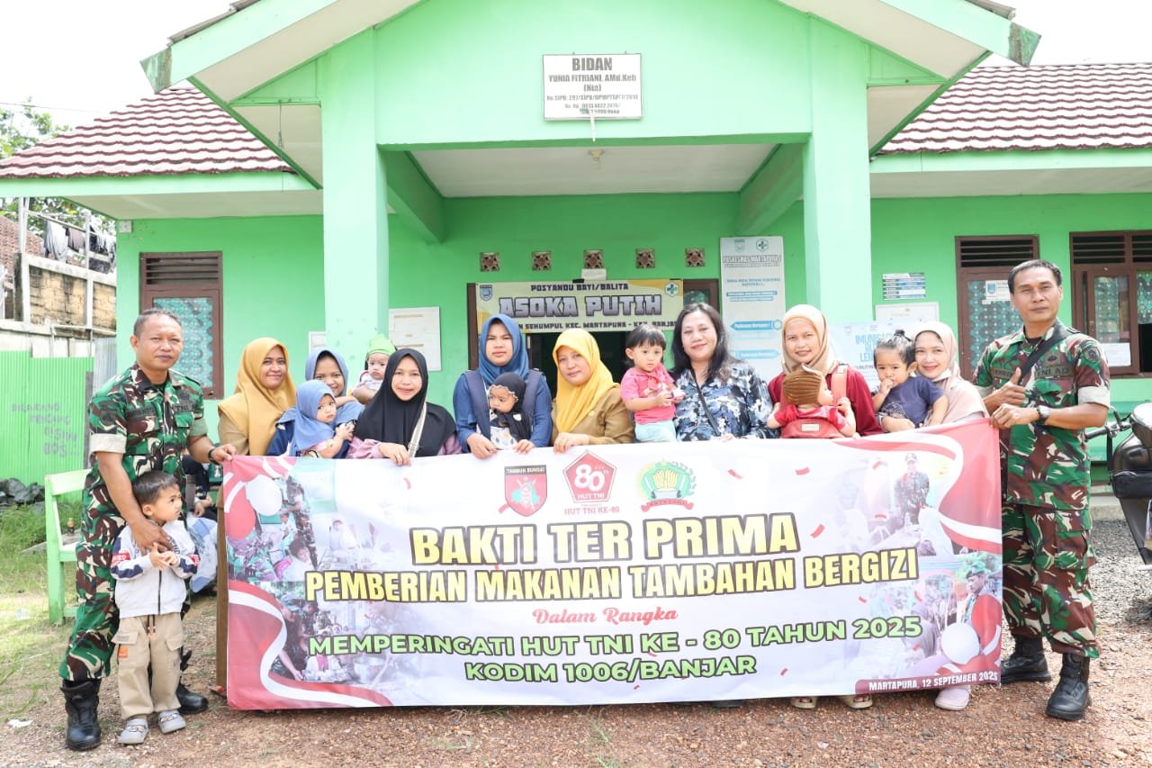 Melalui momentum HUT TNI ke-80, TNI hadir di tengah masyarakat membantu pemerintah dalam meningkatkan kesehatan balita sekaligus mempererat kemanunggalan TNI dengan rakyat.