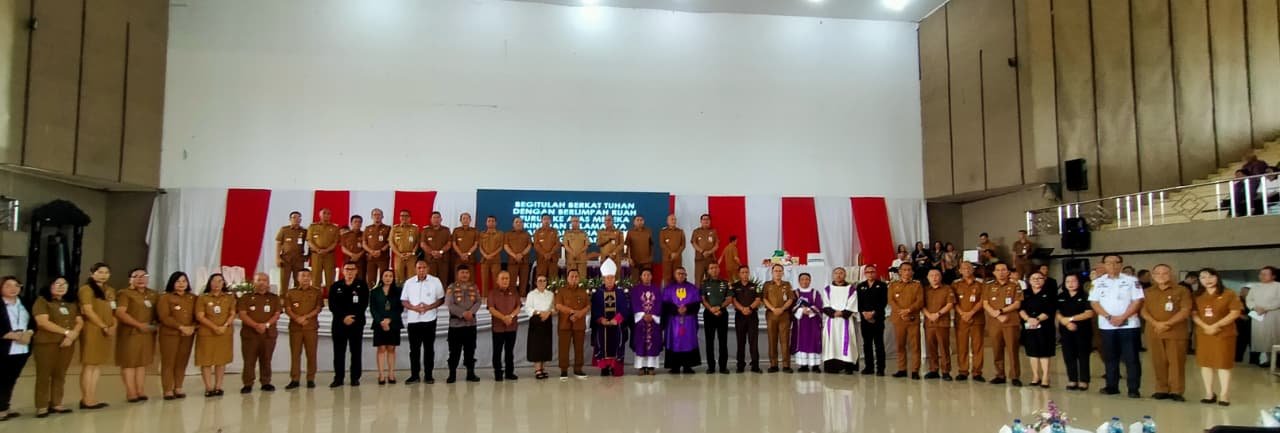 Minahasa,— Komandan Kodim 1302/Minahasa Letkol Inf Bonaventura Ageng F. S., Ibadah Misa Syukur Awal Bulan Maret bersama Pemerintah Kabupaten Minahasa, bertempat di Gedung Wale Ne Tou Tondano, Kecamatan Tondano Utara, Kabupaten Minahasa. Senin, 02 / 03 / 2026 pukul 09.00 WITA.