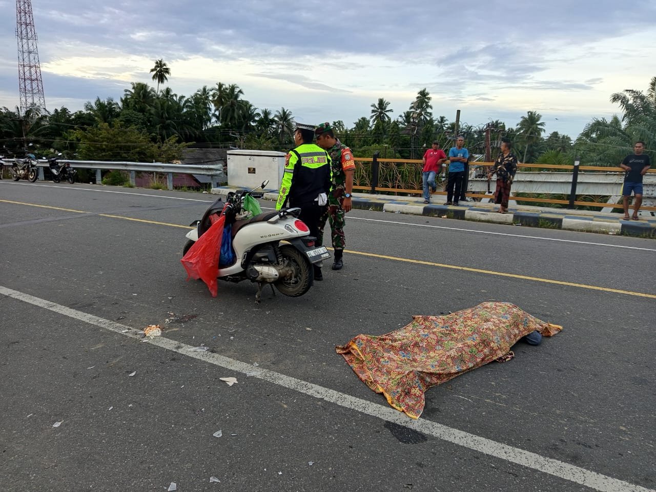 “Berdasarkan data dilokasi Motor Scoopy dengan Nopol BL 6541 WI tersebut dikendarai oleh Sdr. Rakibah korban tabrak lari yang mengakibatkan korban meninggal dunia ditempat, di jalan lintas Meulaboh – Banda Aceh Kec. Teunom Kab. Aceh Jaya.