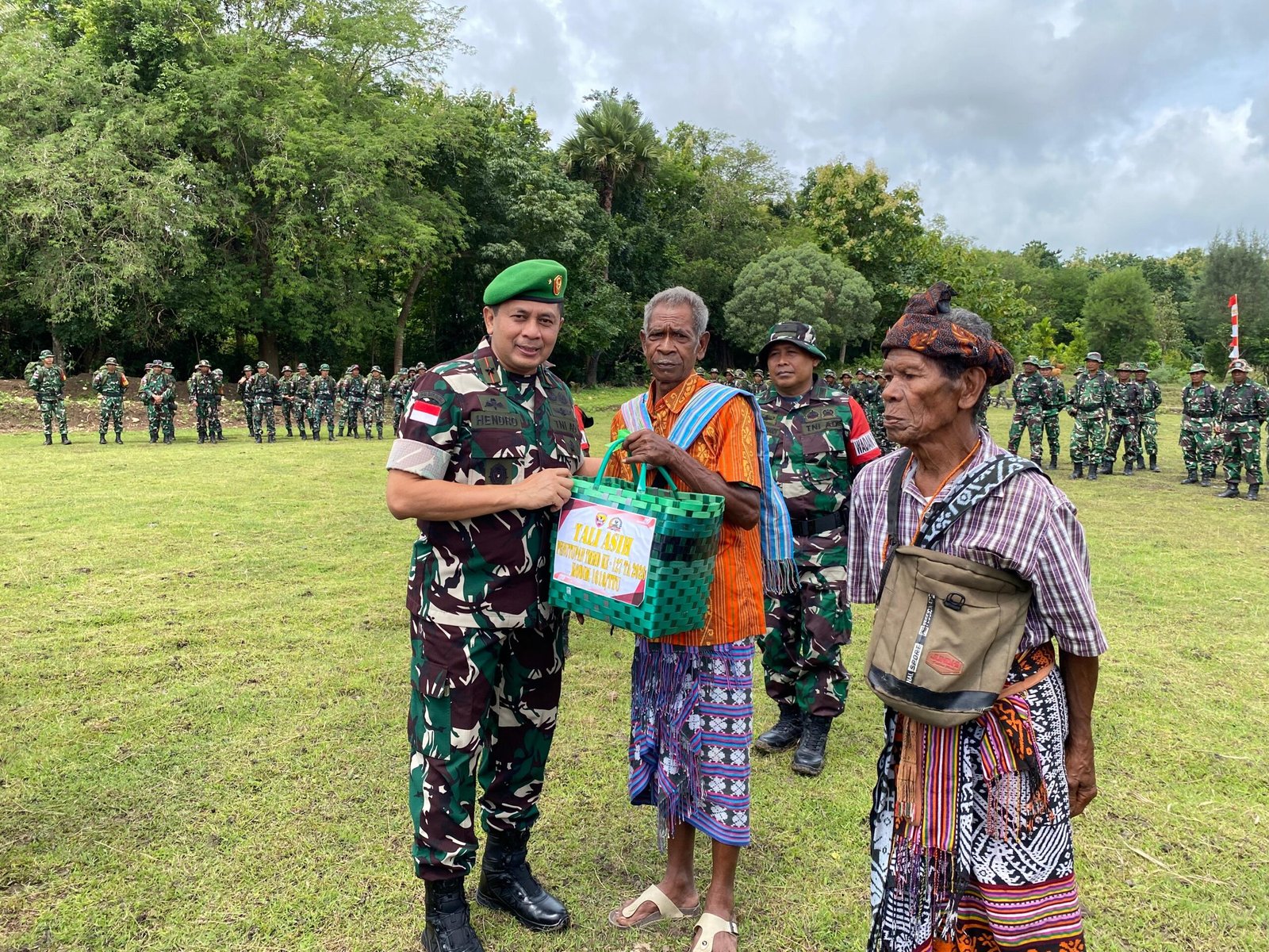 NTT–Kefamenanu. Kepedulian terhadap masyarakat kembali ditunjukkan dalam rangkaian kegiatan Upacara Penutupan TMMD Ke-127 Kodim 1618/TTU yang digelar di Desa Sunkaen, Kecamatan Bikomi Nilulat, Kabupaten Timor Tengah Utara (TTU), Rabu (11/03/2026) Dalam kesempatan tersebut, Danrem 161/Wira Sakti Brigjen TNI Hendro Cahyono bersama Ketua Persit KCK Koorcab Rem 161 PD IX/Udayana Ny. Kartika Adiningtyas Cahyono melaksanakan kegiatan pembagian bantuan sembako kepada masyarakat Desa Sunkaen.